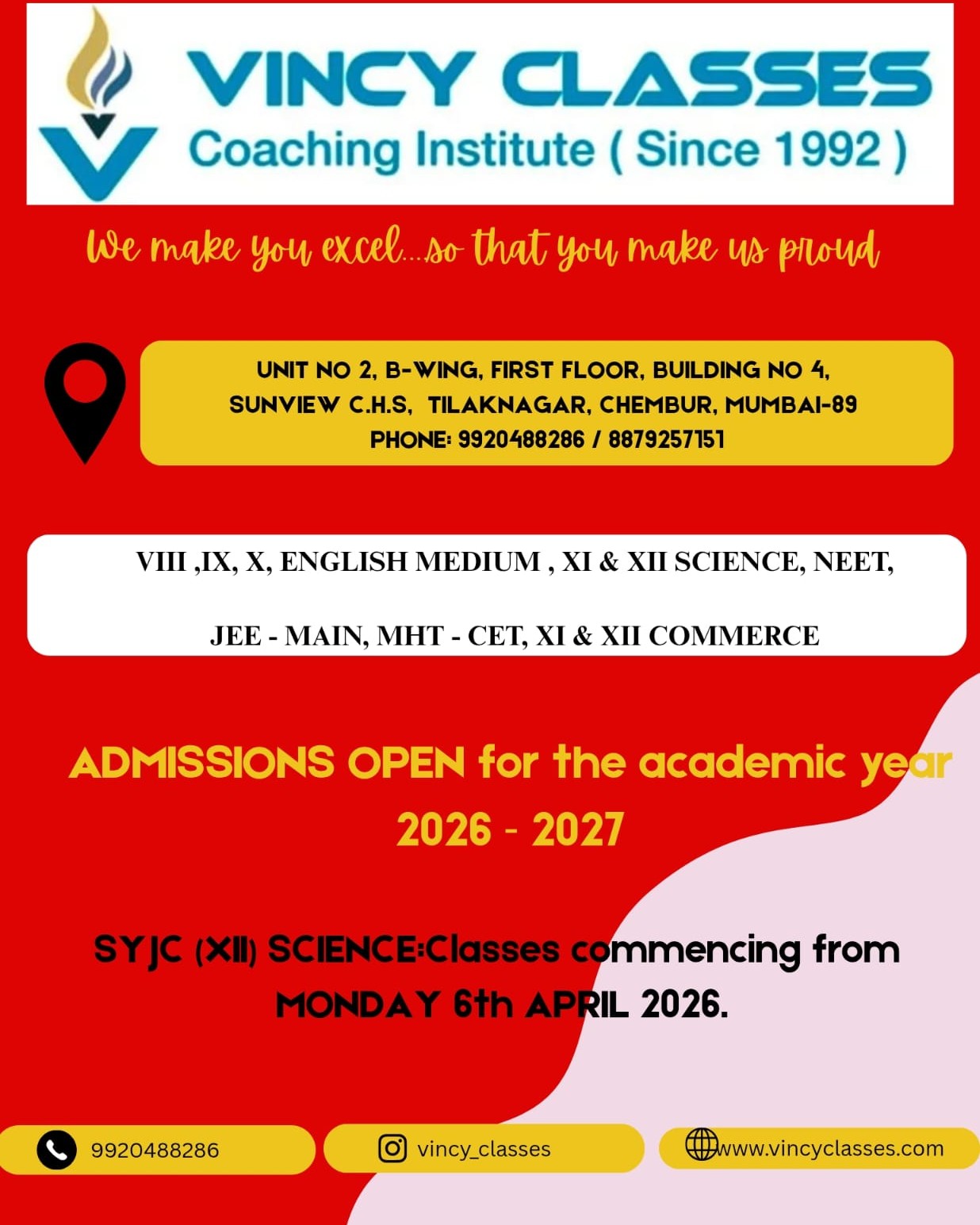 https://www.vincyclasses.com/latest-update/syjc-xii-science-batch-for-the-academic-year-2026-27-commencing-from-monday-6th-april-2026/5